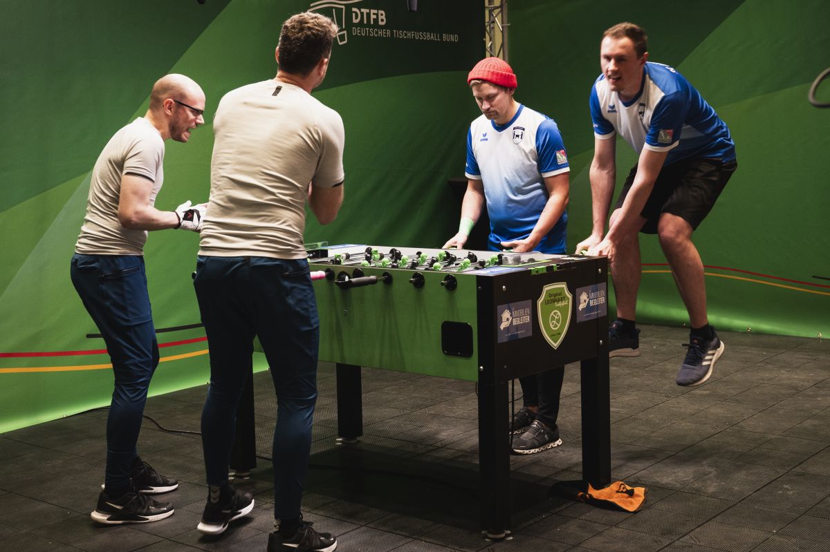 Nirgends war die Favoritensuche so schwer wie im Herren Einzel. Das starke Teilnehmerfeld machte Prognosen schwer, Nationalspieler Alex di Bello hatte aber eine Vorahnung: „Ich glaube einer der aufstrebenden Junioren könnte weit kommen“, meinte der Kölner. Er sollte Recht behalten. Anton Kochhafen aus Flensburg spielte sich aus der Underdogrolle auf Platz drei. Der 17-Jährige ist damit für die Weltmeisterschaft 2025 in Spanien qualifiziert, weil im Finale der Hamburger Nico Wohlgemuth seinen Titel verteidigte und auch sein Kontrahent Raphael Hampel aus Freiburg über die Einzelweltrangliste bereits gesetzt für die WM ist. Das Hochgeschwindigkeitsfinale wurde in der Verlängerung entschieden und ist mit einem Abbonement unter YouTube.com/foosballtv relive zu sehen. Live waren knapp über 1000 Zuschauer gleichzeitig beim Finale im Stream, rund 15000 Zuschauer waren es über das Wochenende verteilt.