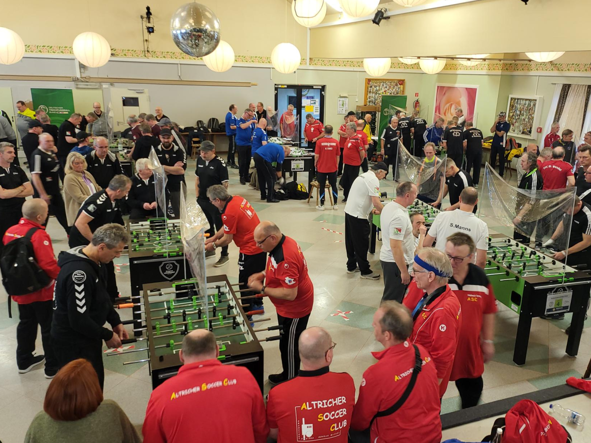 Unter dem Motto #wirdrehenwiederdurch starteten am vergangenen Wochenende die Senioren die Tischfußballsaison 2022. In der Vorrunde der Senioren Bundesliga traten 20 Teams gegeneinander an. Neben dem sportlichen Ehrgeiz war überall große Freude darüber zu spüren, endlich wieder zusammenzutreffen und gemeinsam Kickern zu dürfen. Gemeinsam und doch gegeneinander, denn die Tabellenplätze sind hart umkämpft. Gruppe A wird aktuell angeführt von Eintracht Frankfurt; die Kicker Giants Mönchengladbach stehen an der Spitze von Gruppe B. Die Finalrunde findet am 20. und 21.8. in Haltern am See statt. Die ganze Tabelle gibt es hier