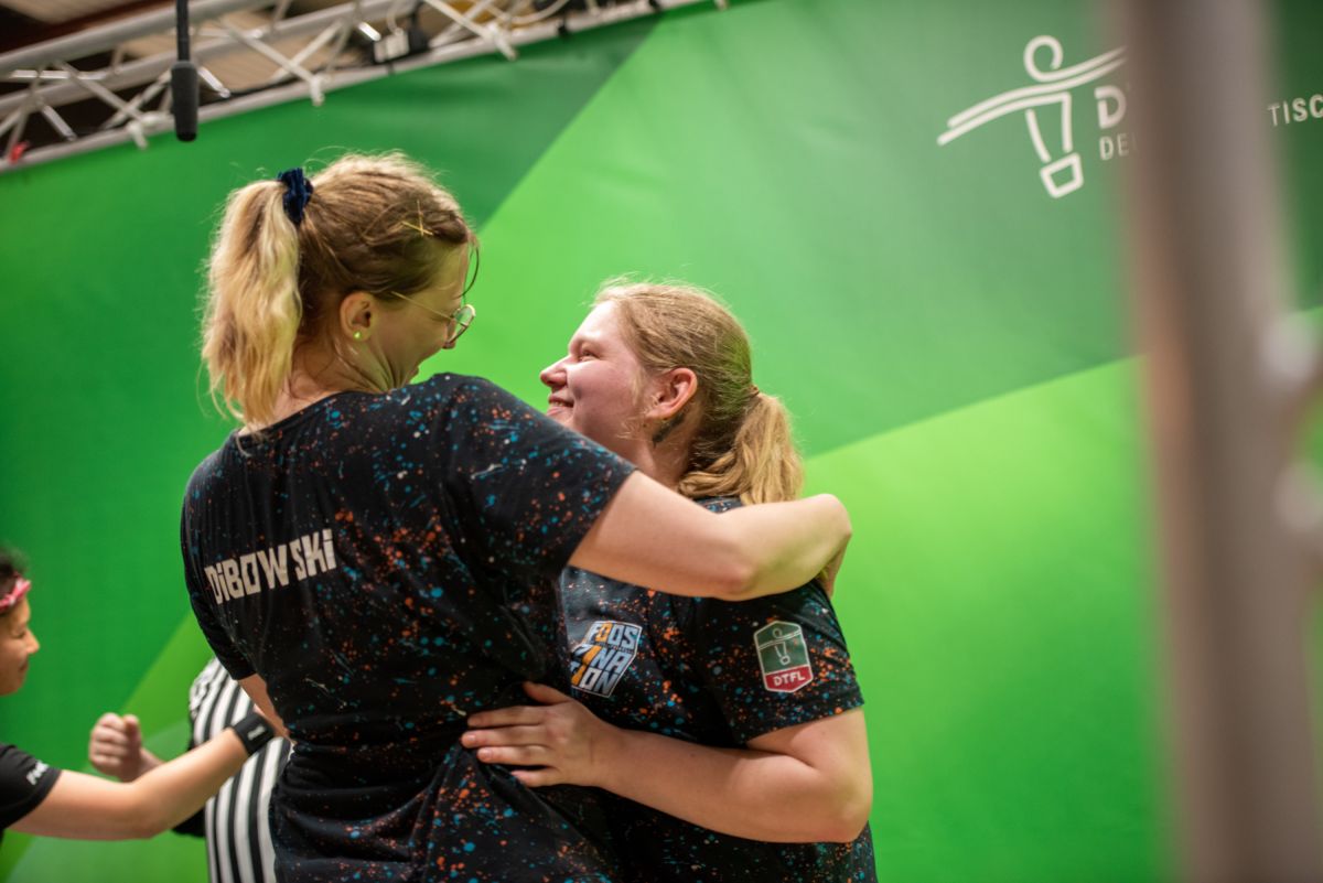 Und diese Stimmung übertrug sich auch über die TV-Bilder nach außen. Über 300000 Aufrufe, hatte die DM auf dem Twitch Kanal „Foosball TV“ bereits Anfang der Folgewoche. Das Finale im Damen Einzel sahen rund 5500 Leute am Bildschirm, als die Favoritin My Linh Tran ihren Anspruch, die beste Dame der Welt sein zu wollen eindrucksvoll gegen die Newcomerin Djamila Nader untermauerte. Genau wie Djamila tragen auch die frisch gebackenen Doppelchampions Julia Wohlgemuth und Sanna Dibowski das Trikot des Bundesligateams Fooszination Hamburg. Die Beiden siegten gegen ihre Vorbilder Pia Merbach von Eintracht Frankfurt und die nahezu unbesiegbare Tran. „Die Entwicklung bei den Damen ist so rasant und super für unseren Sport“, so Role Model Tran.